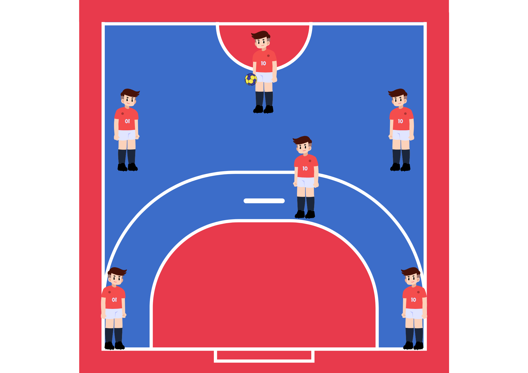 • Le « Zone » : Seul le gardien de but a le droit de fouler la zone des 6 mètres. Les attaquants peuvent sauter au-dessus de la zone, à condition de lâcher le ballon avant de toucher le sol.